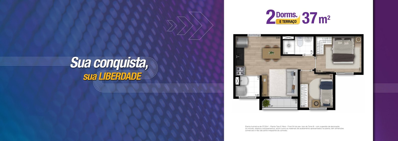 37 m² – 2 dormitórios com terraço