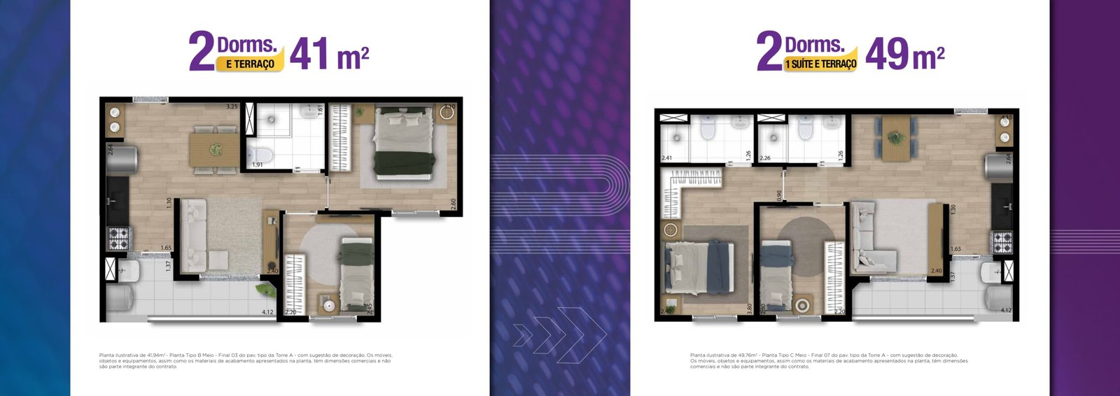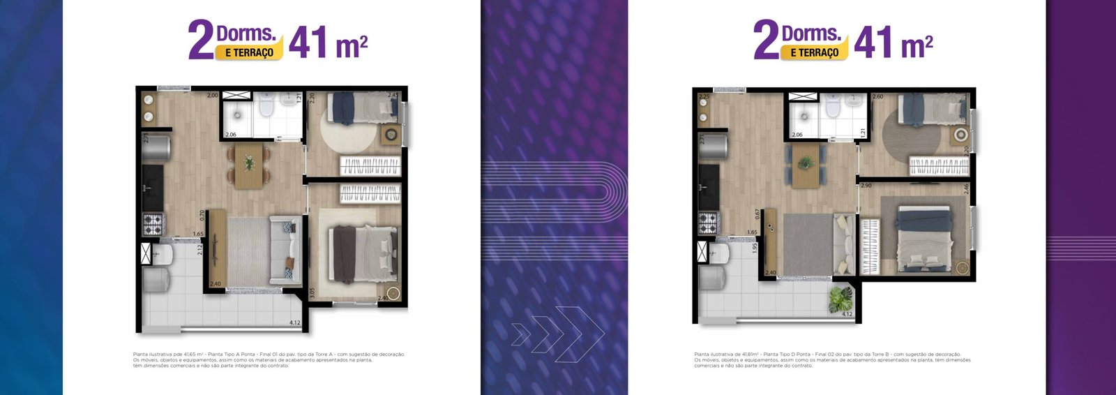 41 m² – 2 dormitórios com terraço